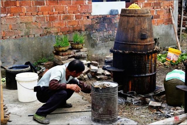 閑聊間,我們了解到,原來程師傅釀酒多年。剛開始幾年雖然少有盈利,但并沒有賺什么大錢,也就夠吃夠用。后來越做越好,改進(jìn)了液態(tài)發(fā)酵的方法,出酒率提高了,酒質(zhì)也跟上去了。以前愁酒賣不出,后來愁酒不夠賣。原來的一百型設(shè)備不夠用了,又添置了一套兩百型的鍋爐設(shè)備。程師傅的酒生意做得紅紅火火,一家人也和和睦睦。程師傅說畢竟父母年紀(jì)大了,自己要在身邊照顧